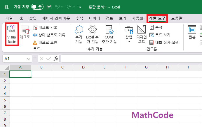 엑셀 VBA 개발 도구를 실행하는 방법은 2가지 입니다.